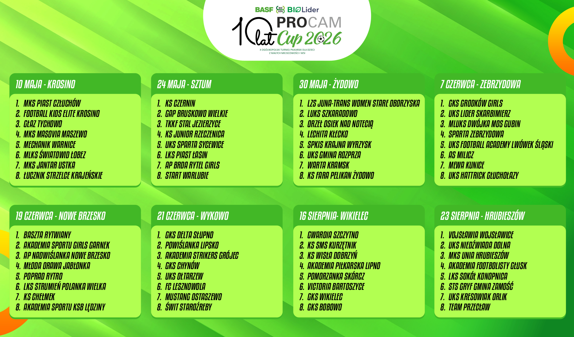 Zakończyliśmy etap zgłoszeń do PROCAM CUP 2026 i możemy oficjalnie ogłosić zespoły, które zostały zakwalifikowane do tegorocznych rozgrywek.